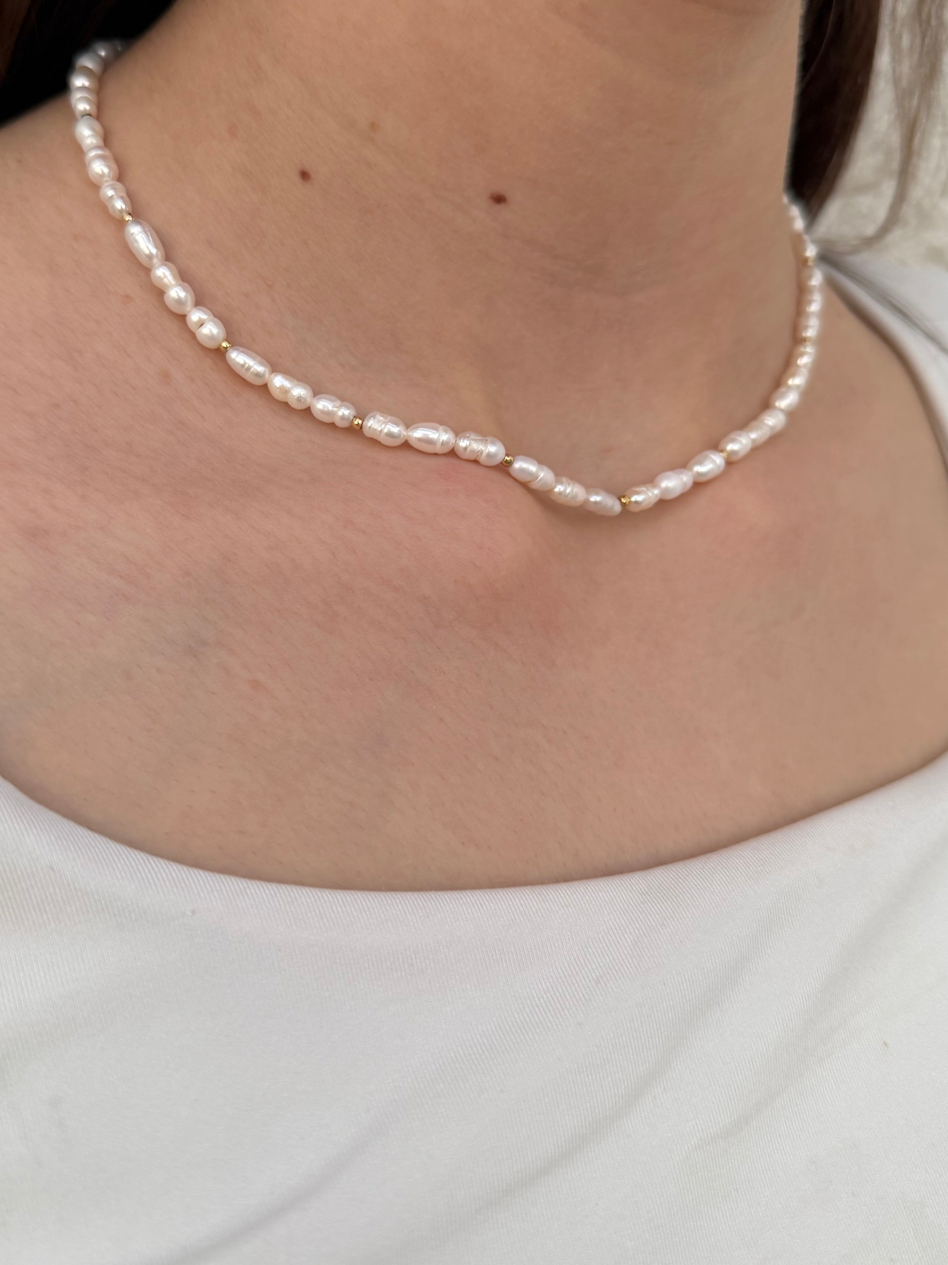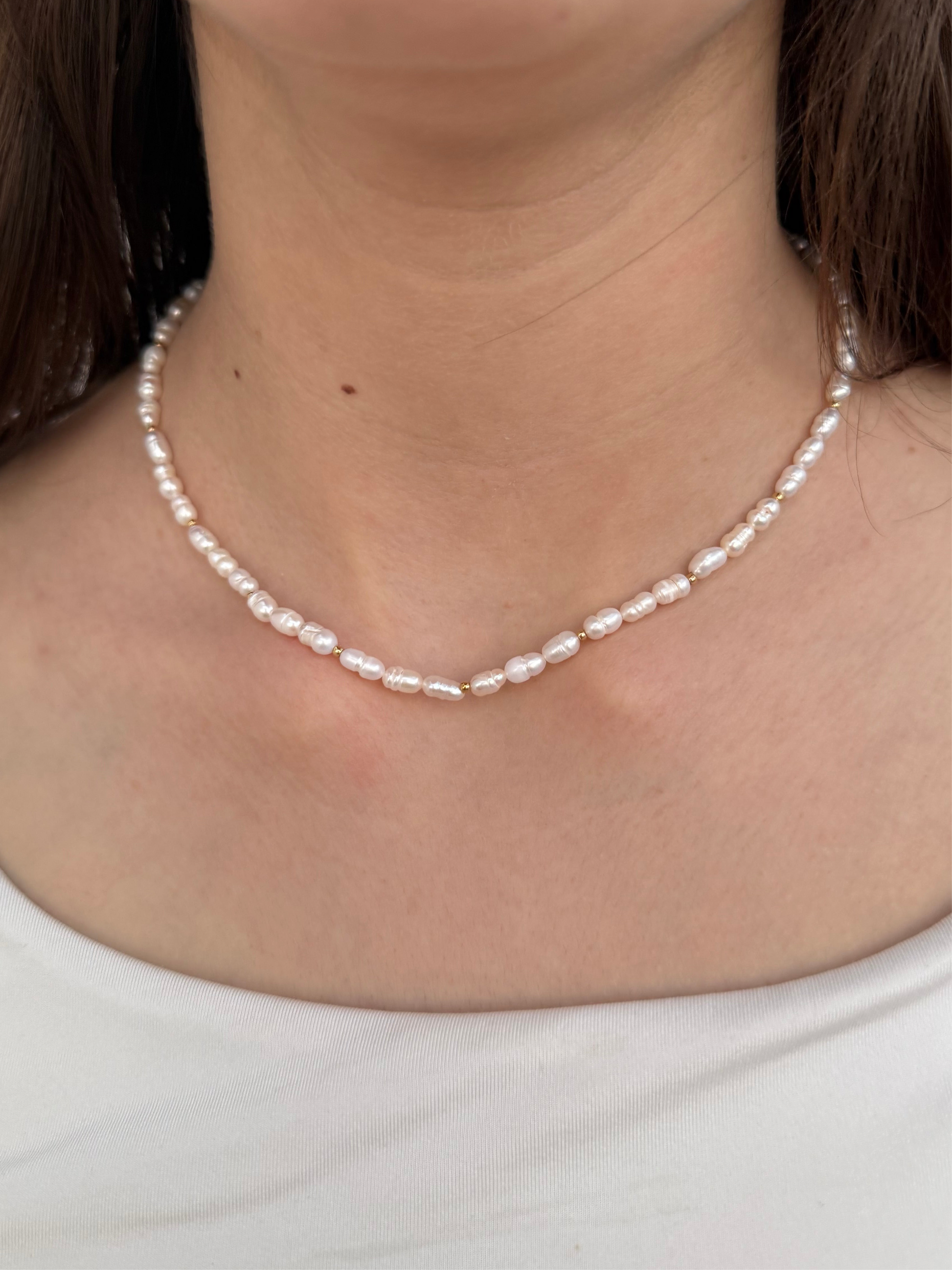 18K gold necklace, made in Brazil, entirely composed of natural pearls.