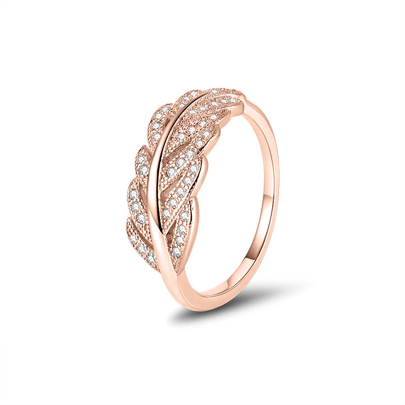 טבעת עלים מעוצבת בציפוי זהב אדום (רוז גולד), עשויה כסף אמיתי 925 ומשובצת אבני זרקון נוצצות באיכות גבוהה. העיצוב בהשראת טבע מעניק מראה רומנטי ועדין, עם נגיעה יוקרתית שמוסיפה ברק לכל הופעה – יומיומית או חגיגית.