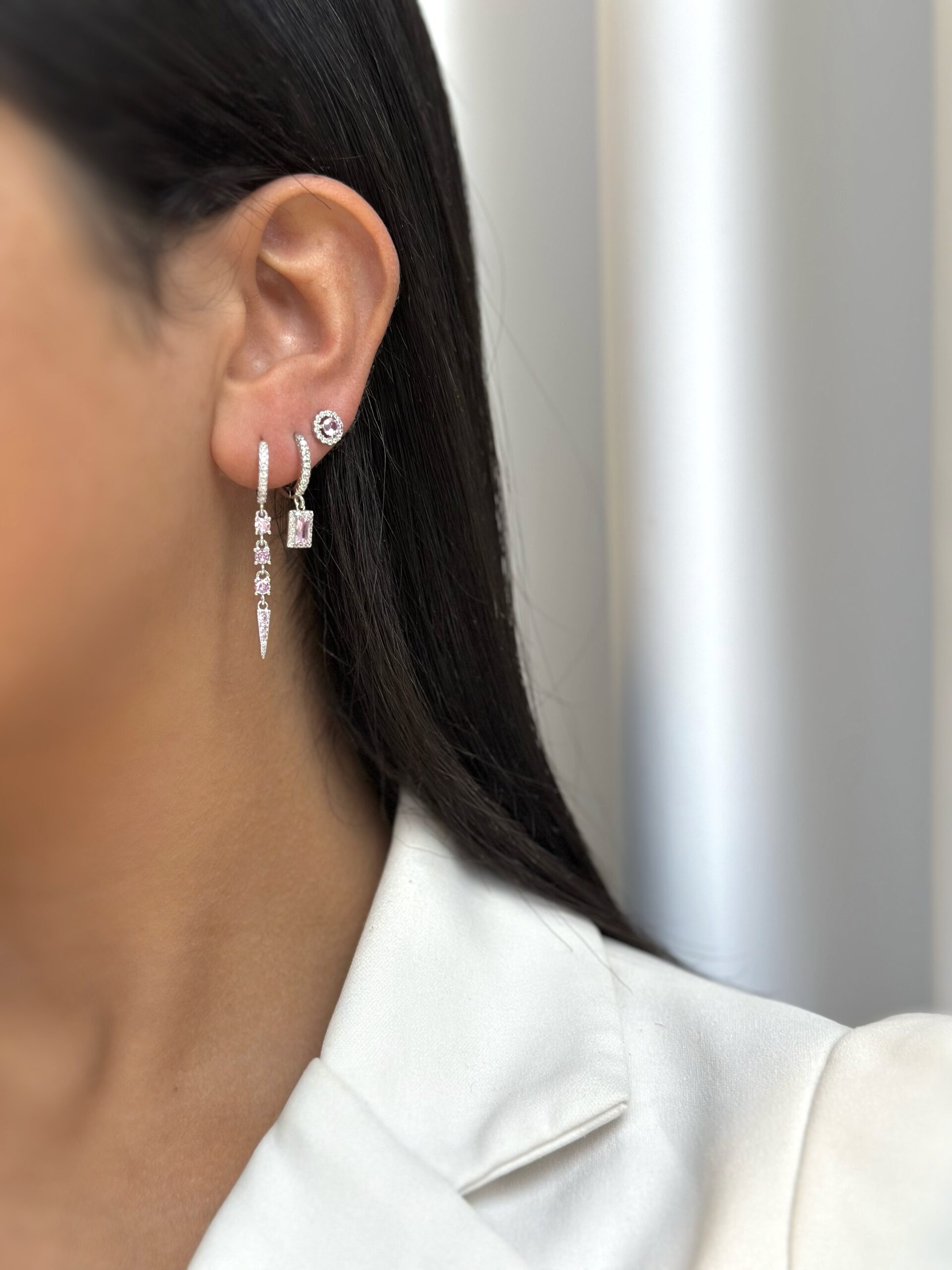 סט עגילים עשוי כסף אמיתי 925, משובץ בזירקונים ורודים ולבנים נוצצים. הסט כולל עגיל צמוד עם זירקון ורוד עגול, עגיל חישוק קטן משובץ זירקונים, ועגיל חישוק עם תליון אבני זירקון בצורות מרקיזה, ריבוע וטיפה. שילוב קלאסי, אלגנטי ורומנטי שמוסיף ברק וסטייל לכל הופעה – מושלם ליום יום וגם לערב חגיגי.