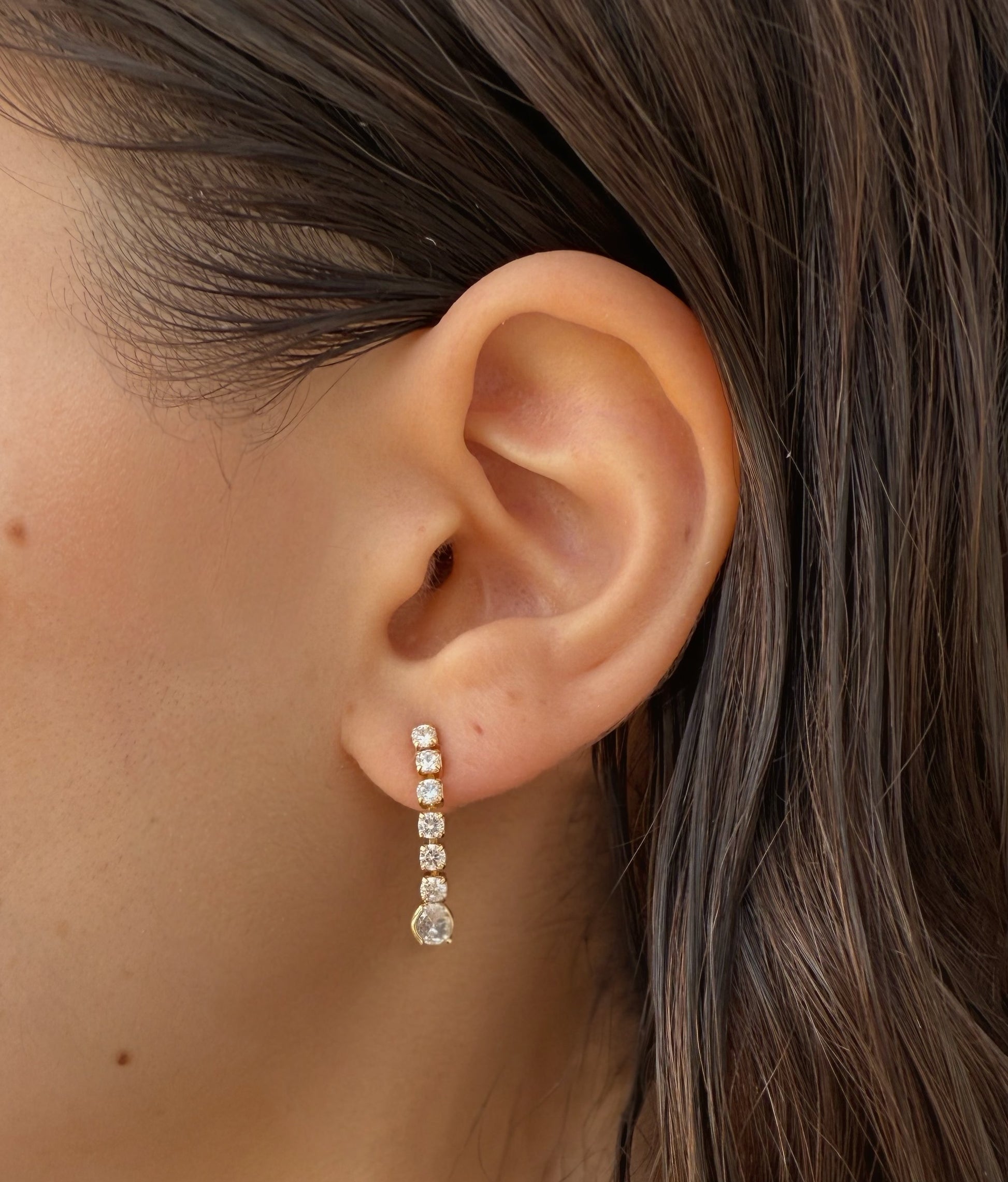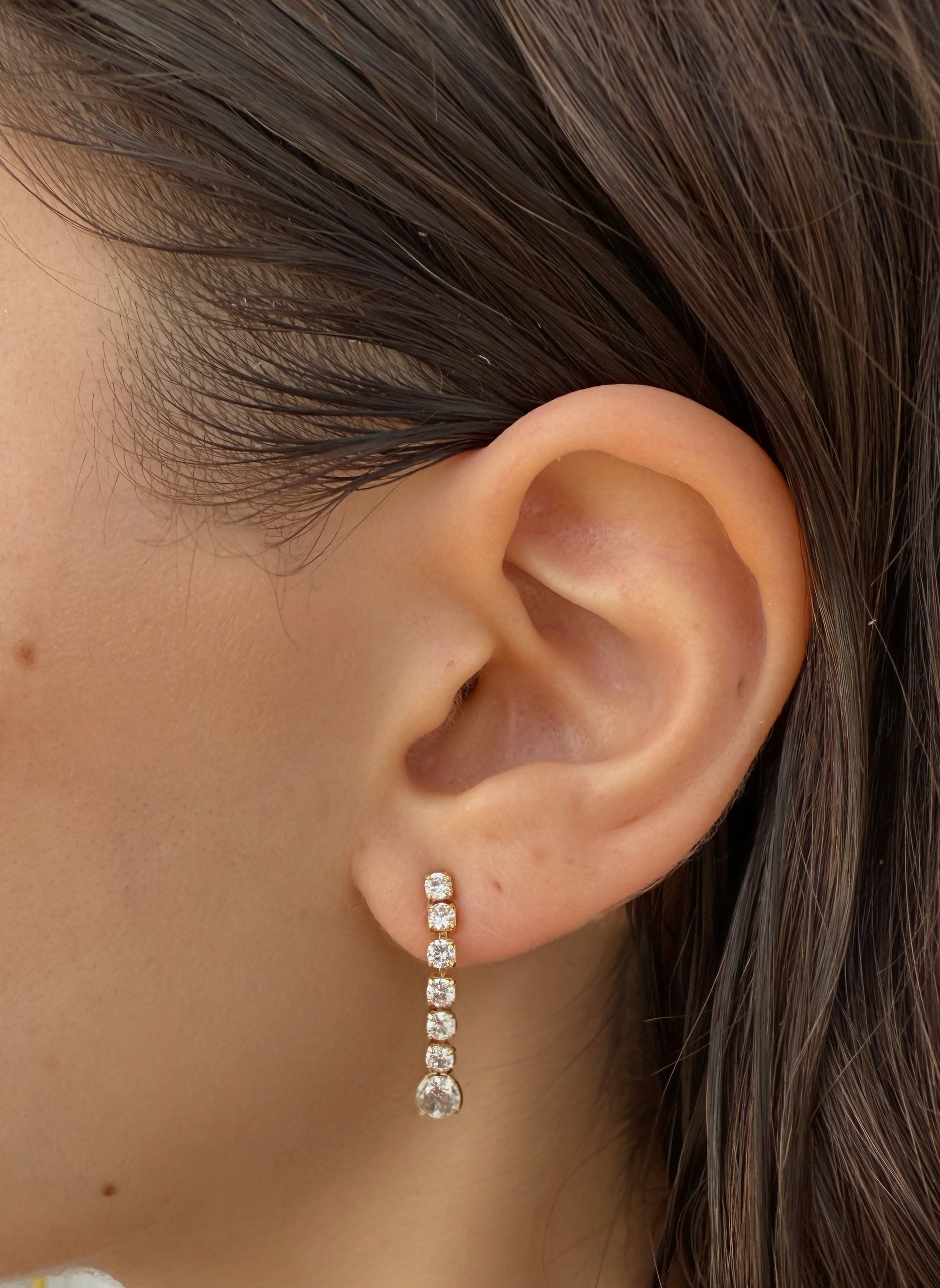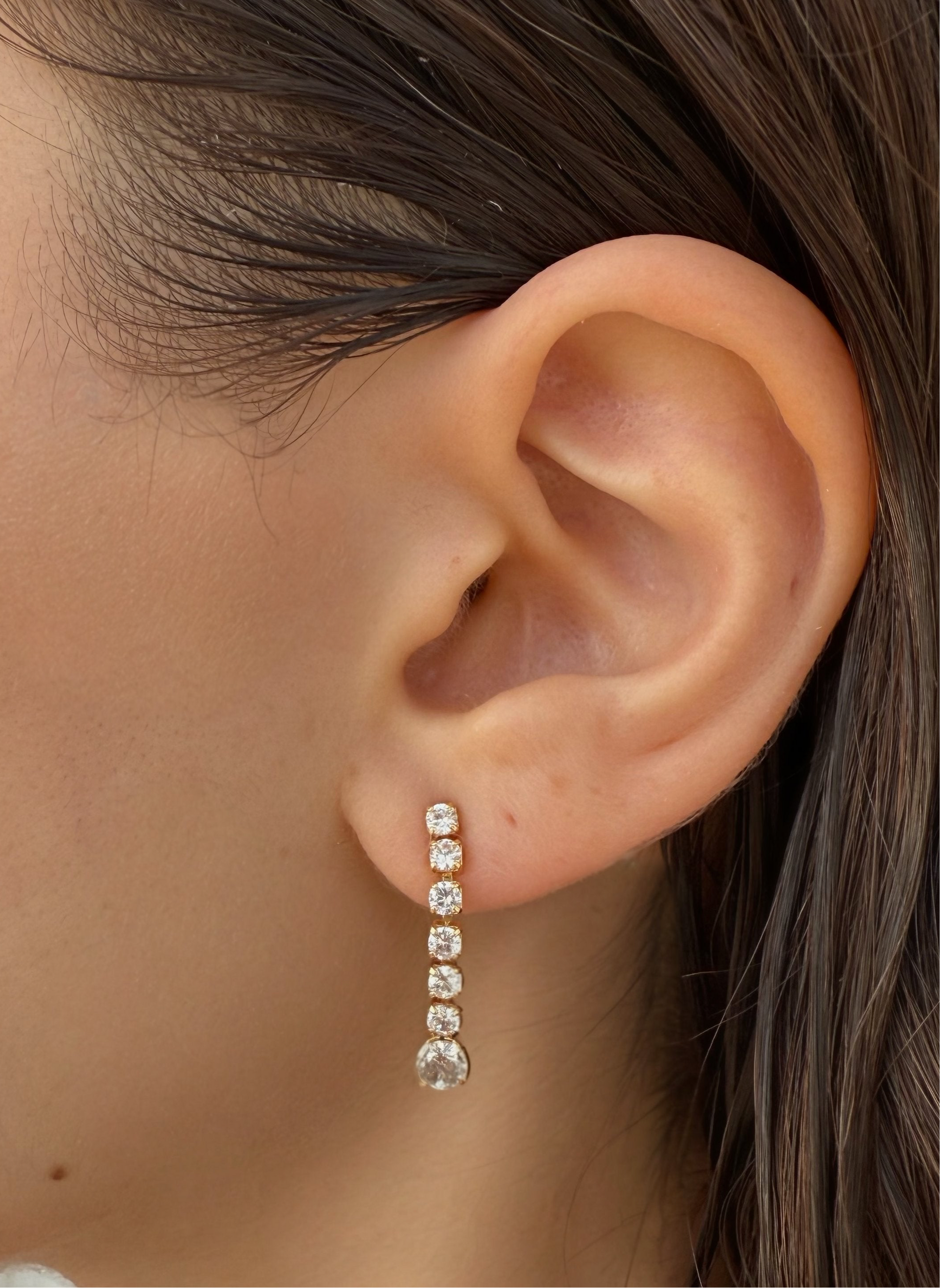 מקולקציית ברזיל, בציפוי זהב 18 קראט. העיצוב כולל שבעה זירקונים נופלים ואבן מרכזית עגולה – שילוב מושלם של זוהר ואלגנטיות לכל אירוע