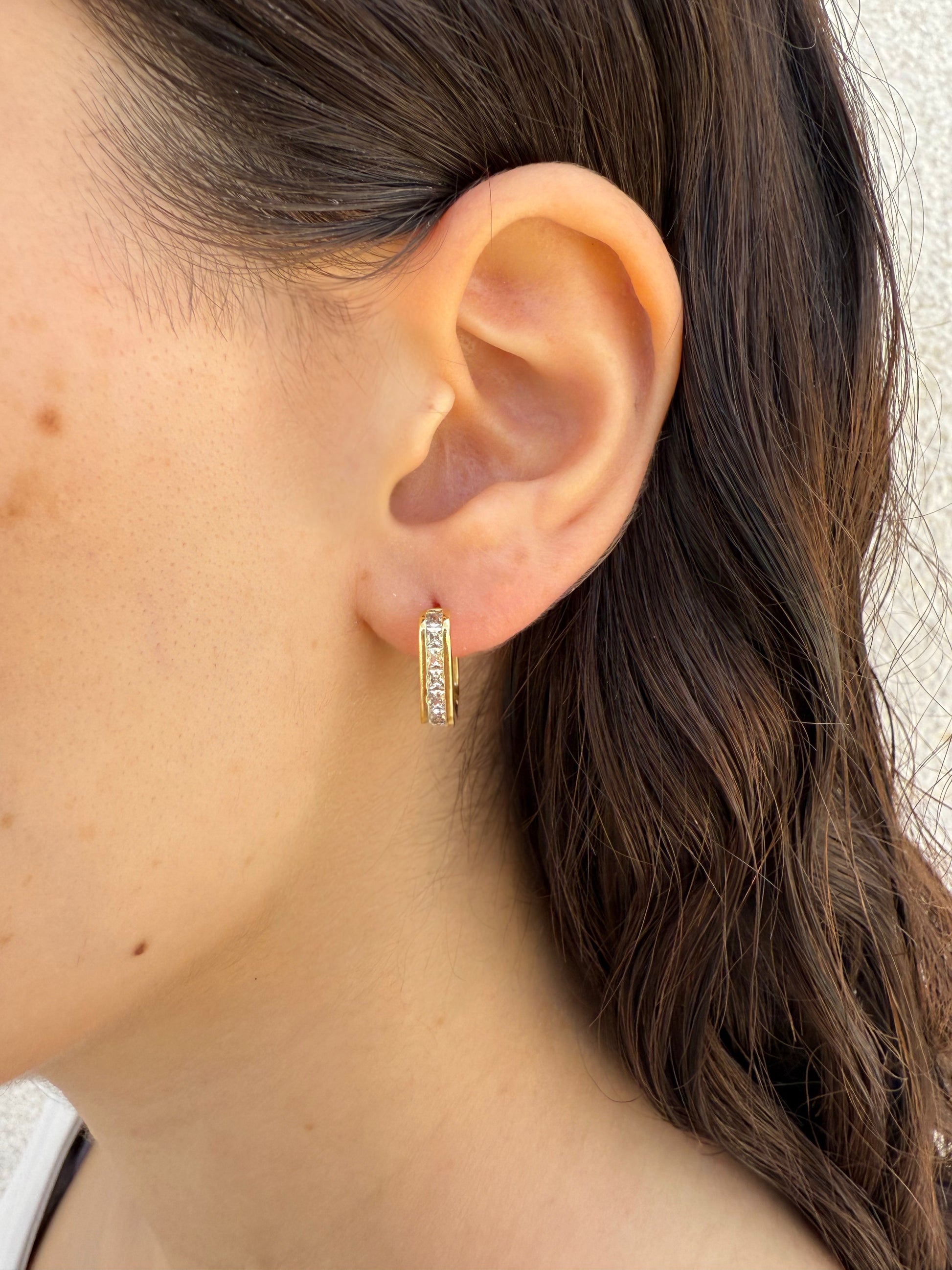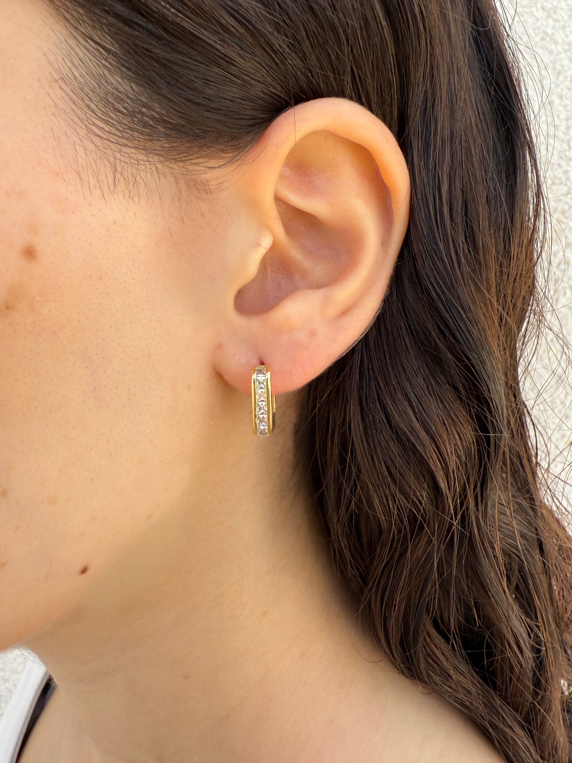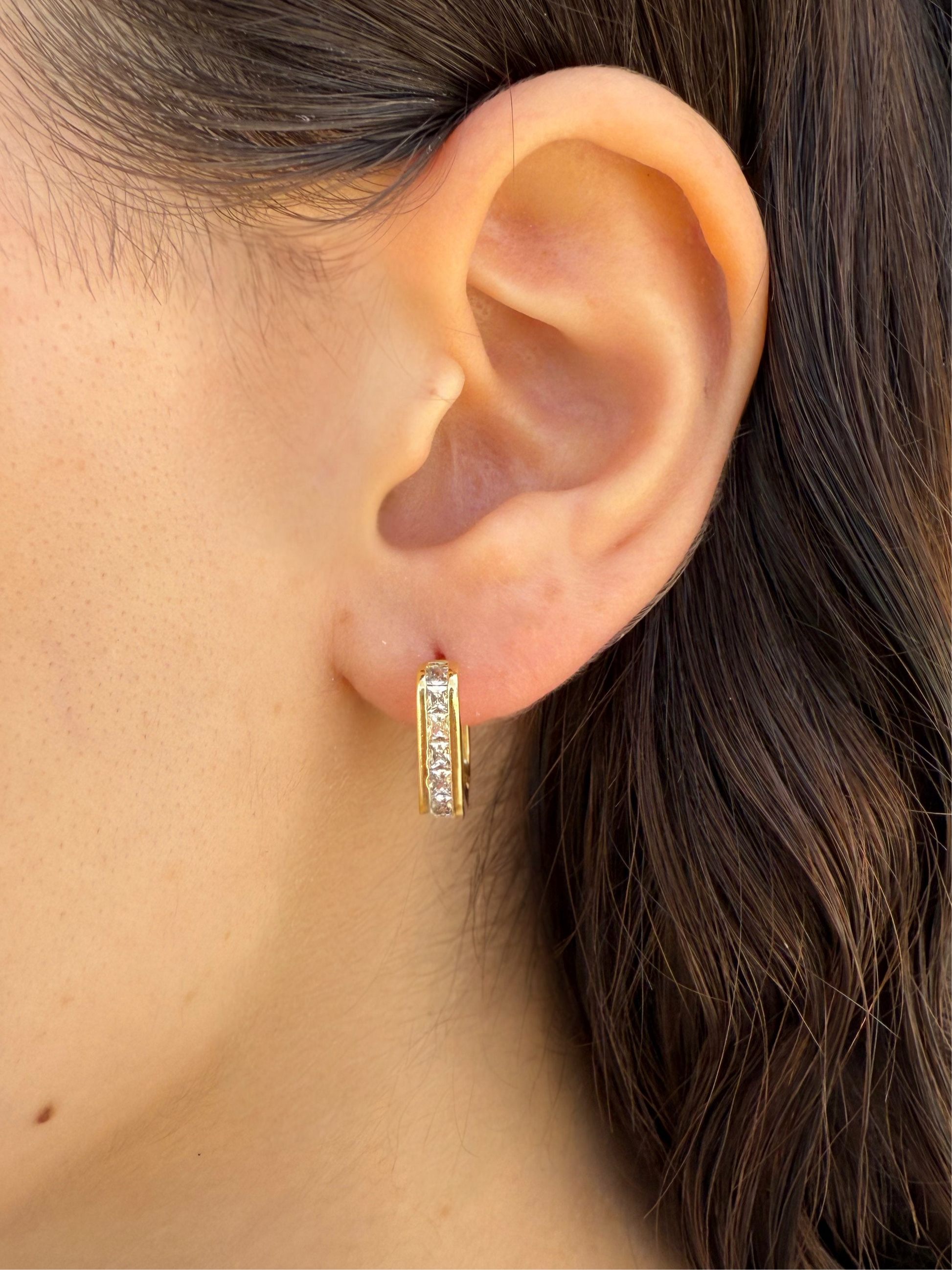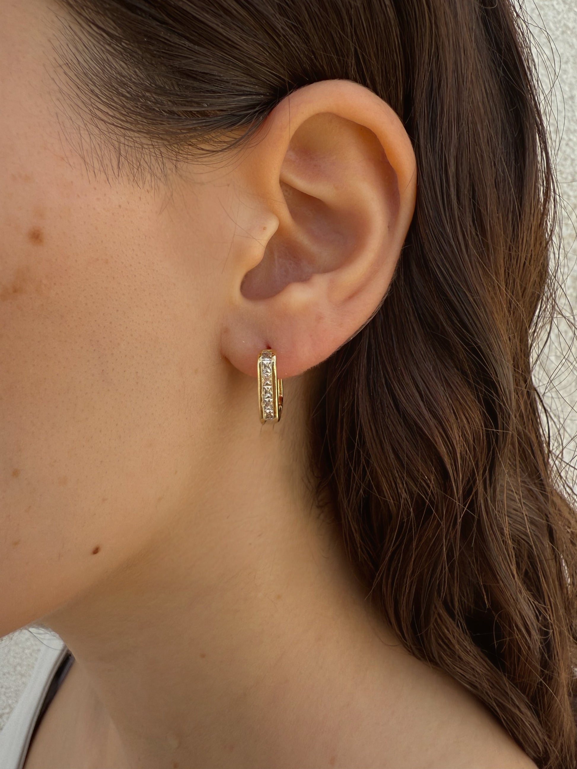 מקולקציית ברזיל שלנו, בציפוי זהב 18 קראט. בעיצוב חישוק אלגנטי בצורת ריבוע, משובץ אבני זרקון מנצנצות