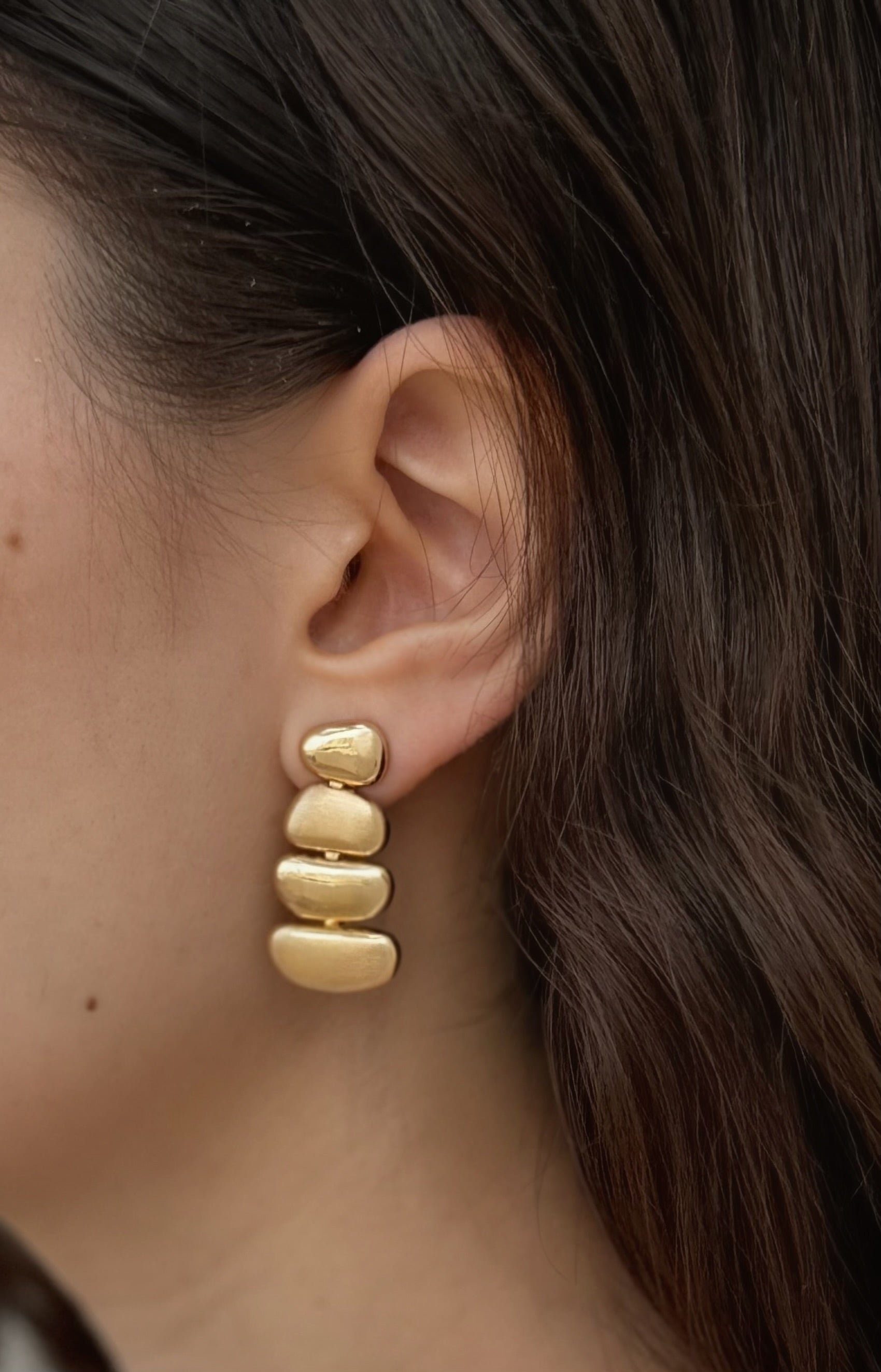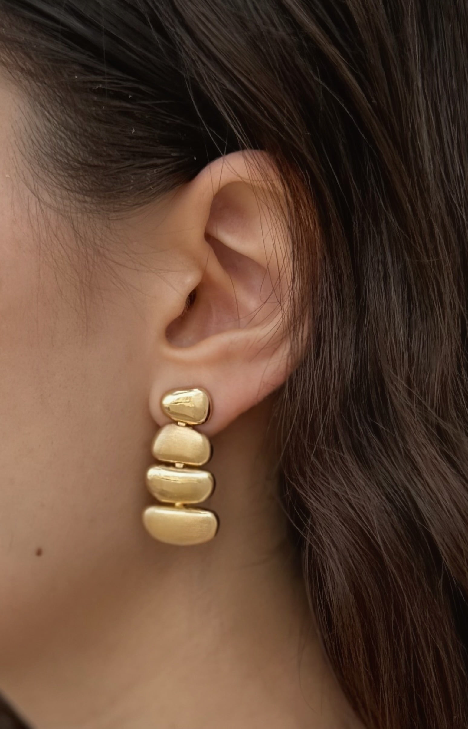 מקולקציית ברזיל שלנו, בציפוי זהב 18 קראט. עיצוב בארבעה אלמנטים אובאליים עם שילוב של גימור מבריק ומט, יוצר מראה עכשווי, אלגנטי ומלא סטייל.