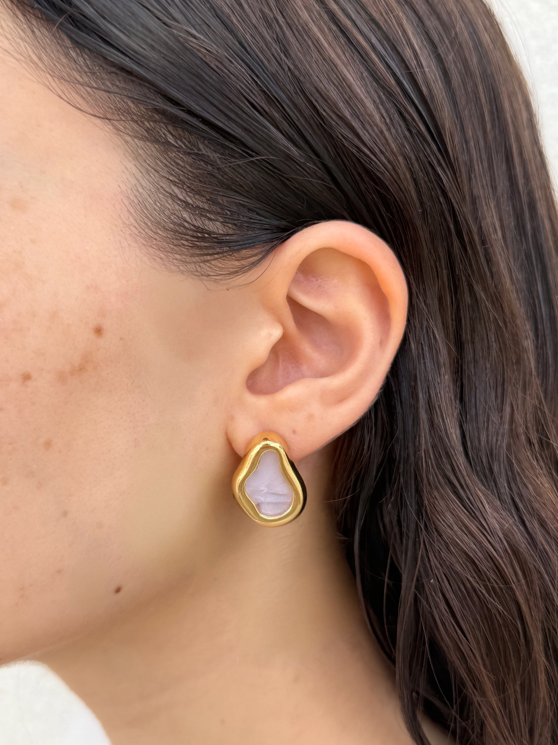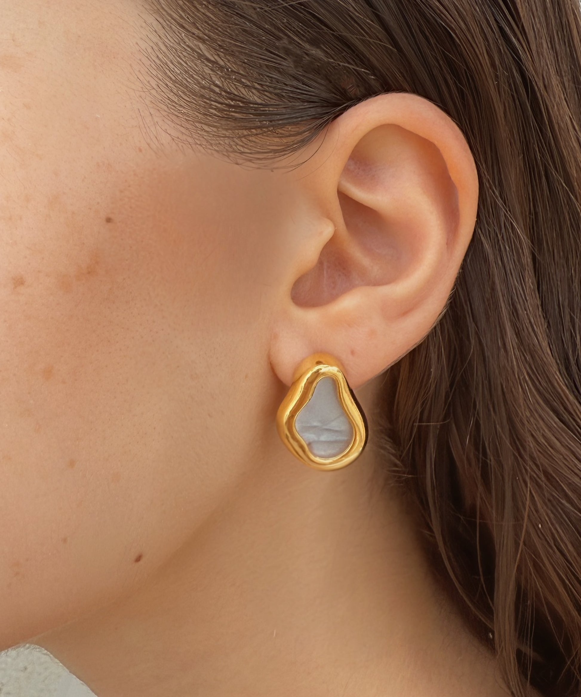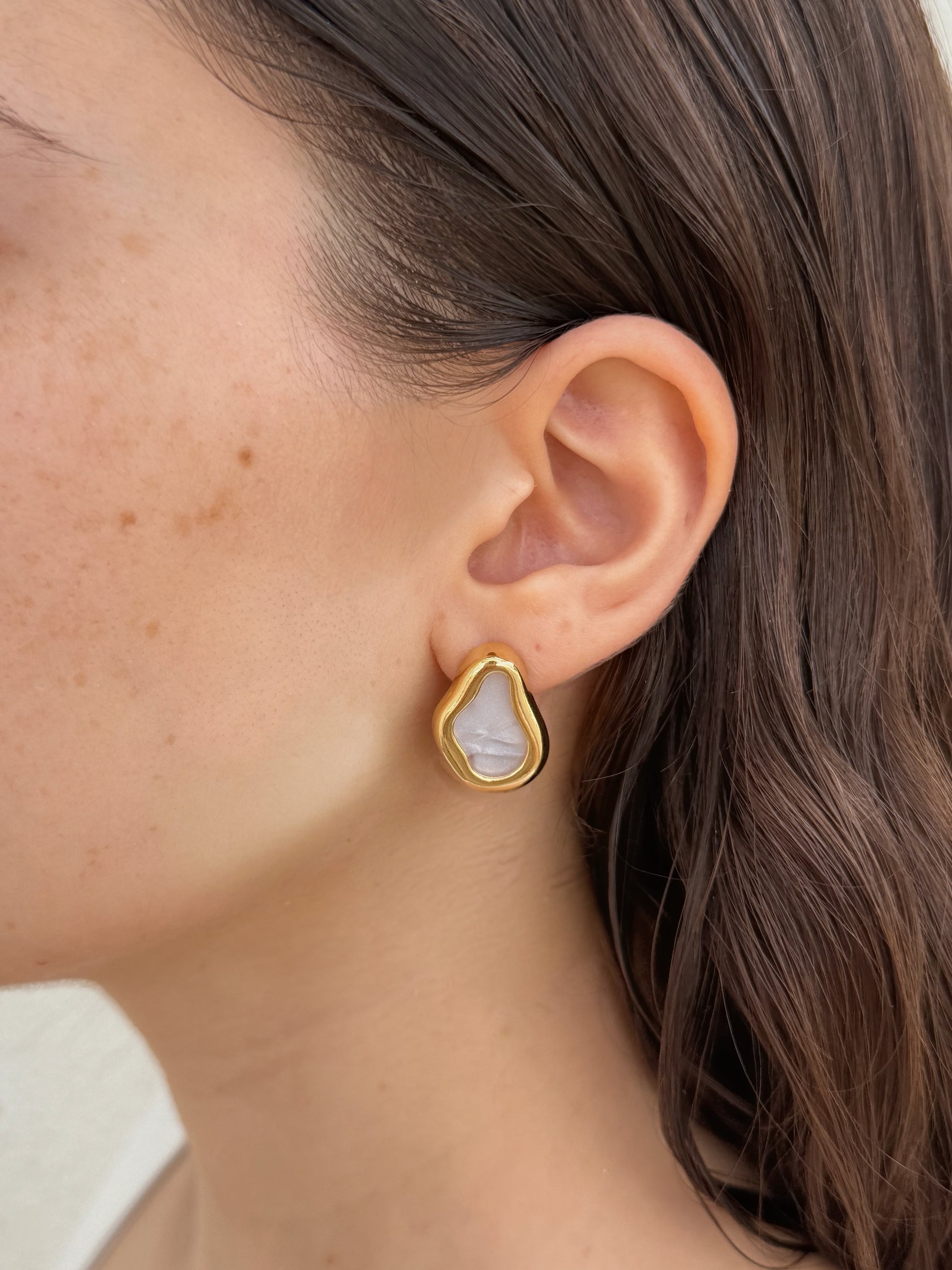 מקולקציית ברזיל שלנו, בציפוי זהב 18 קראט. עיצוב בצורת טיפה בגוון לבן יוצר ניגוד עדין ומלא אלגנטיות.