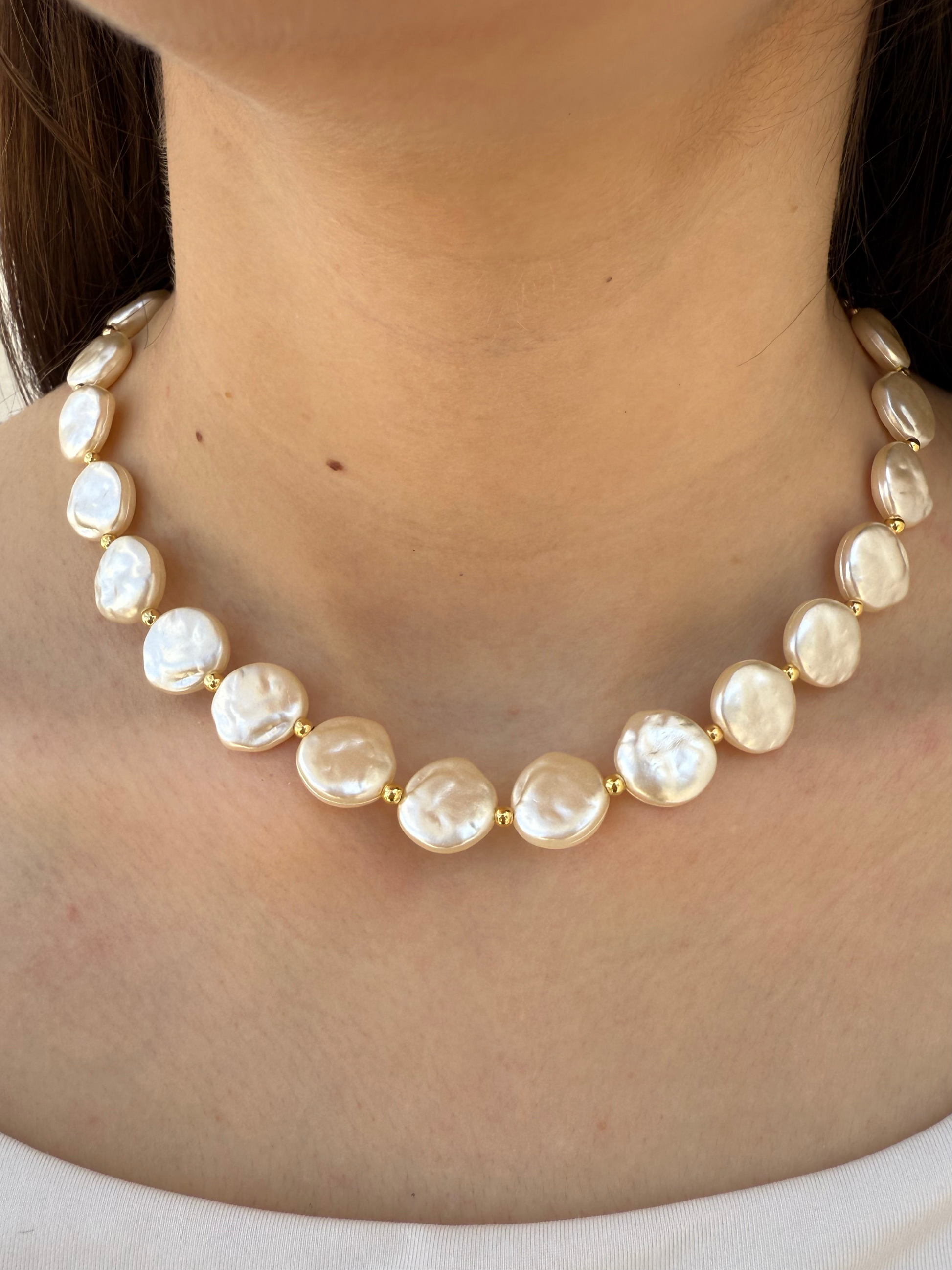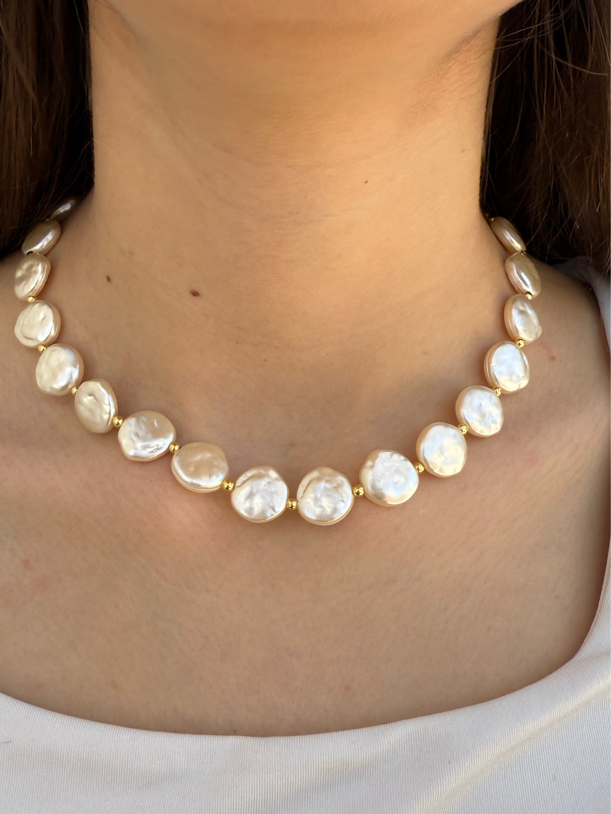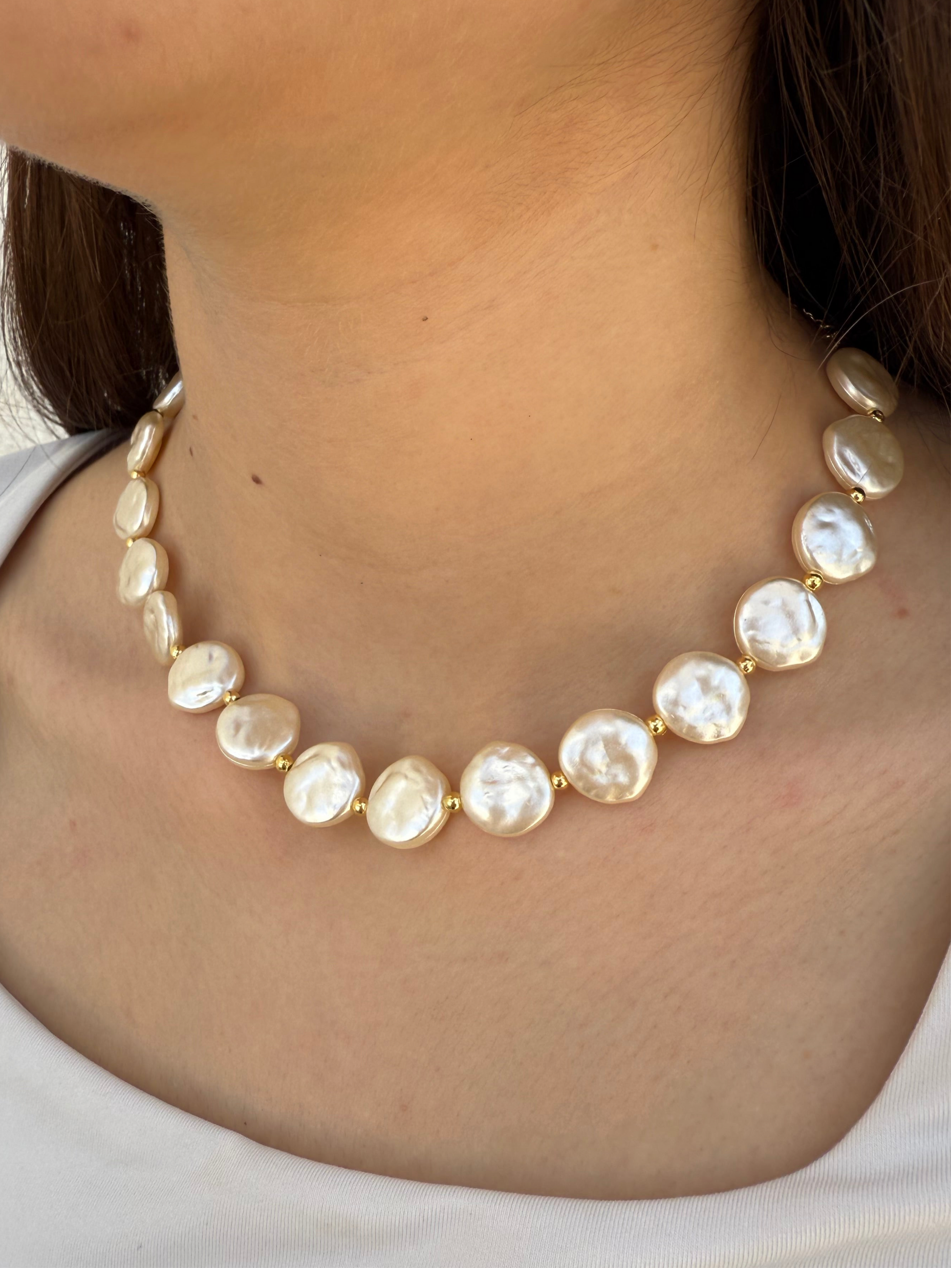 צ’וקר מזהב 18 קראט, תוצרת ברזיל, עם שרשרת המורכבת כולה מפנינים בעיצוב עגול