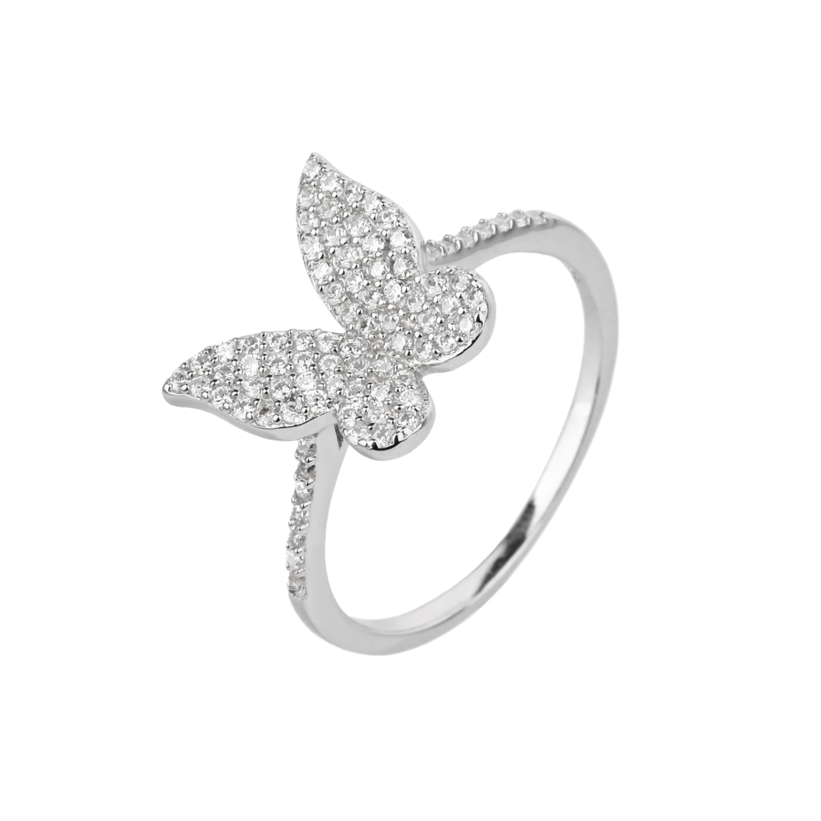 טבעת עשויה כסף אמיתי 925, בעיצוב פרפר מרשים המשובץ בזירקונים נוצצים, עם שיבוץ נוסף לאורך החישוק. טבעת רומנטית ועל־זמנית שמוסיפה ברק וייחודיות לכל הופעה – מושלמת ליום יום וגם לערב חגיגי.