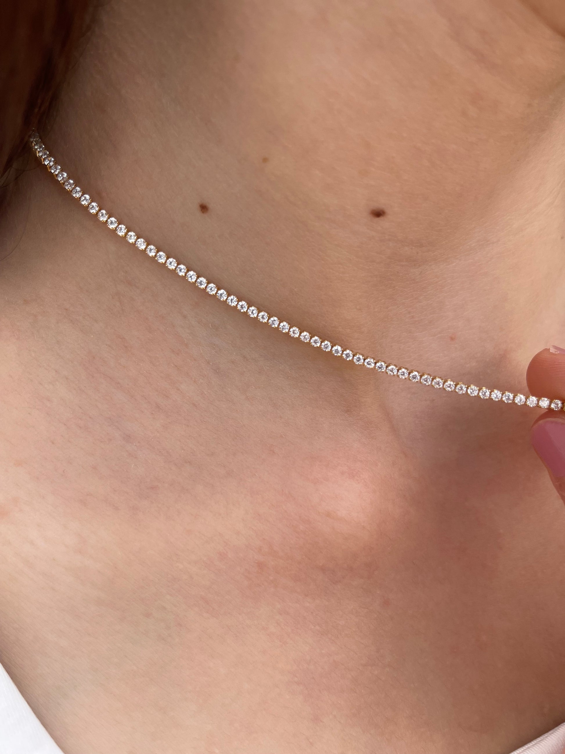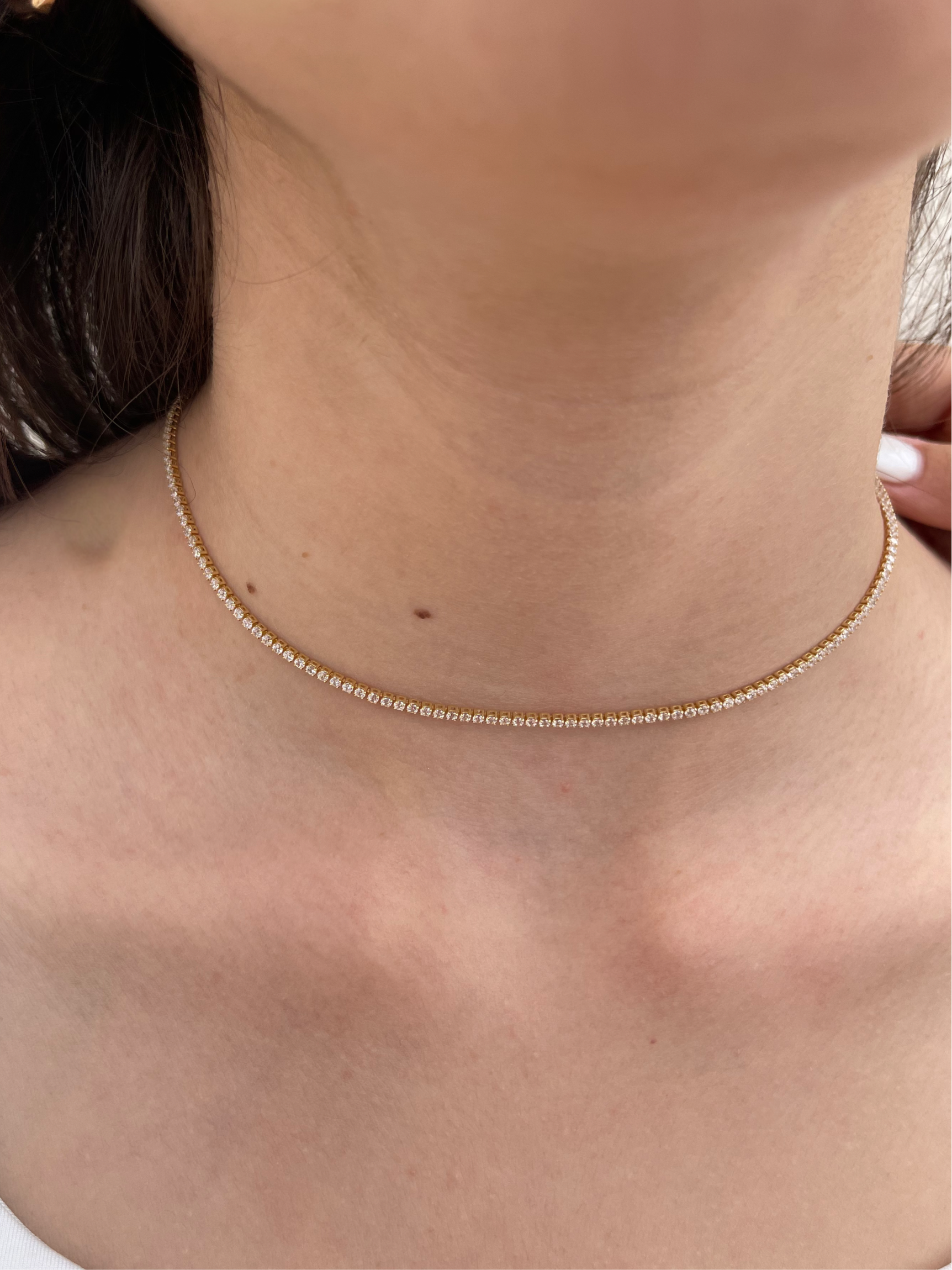 צ'וקר עשויה בציפוי זהב צהוב 18 קראט ורודיום לבן.