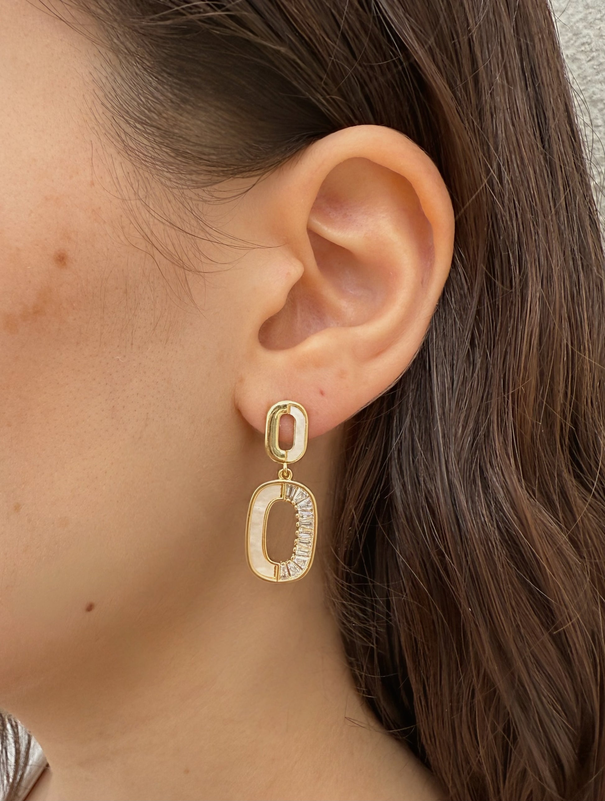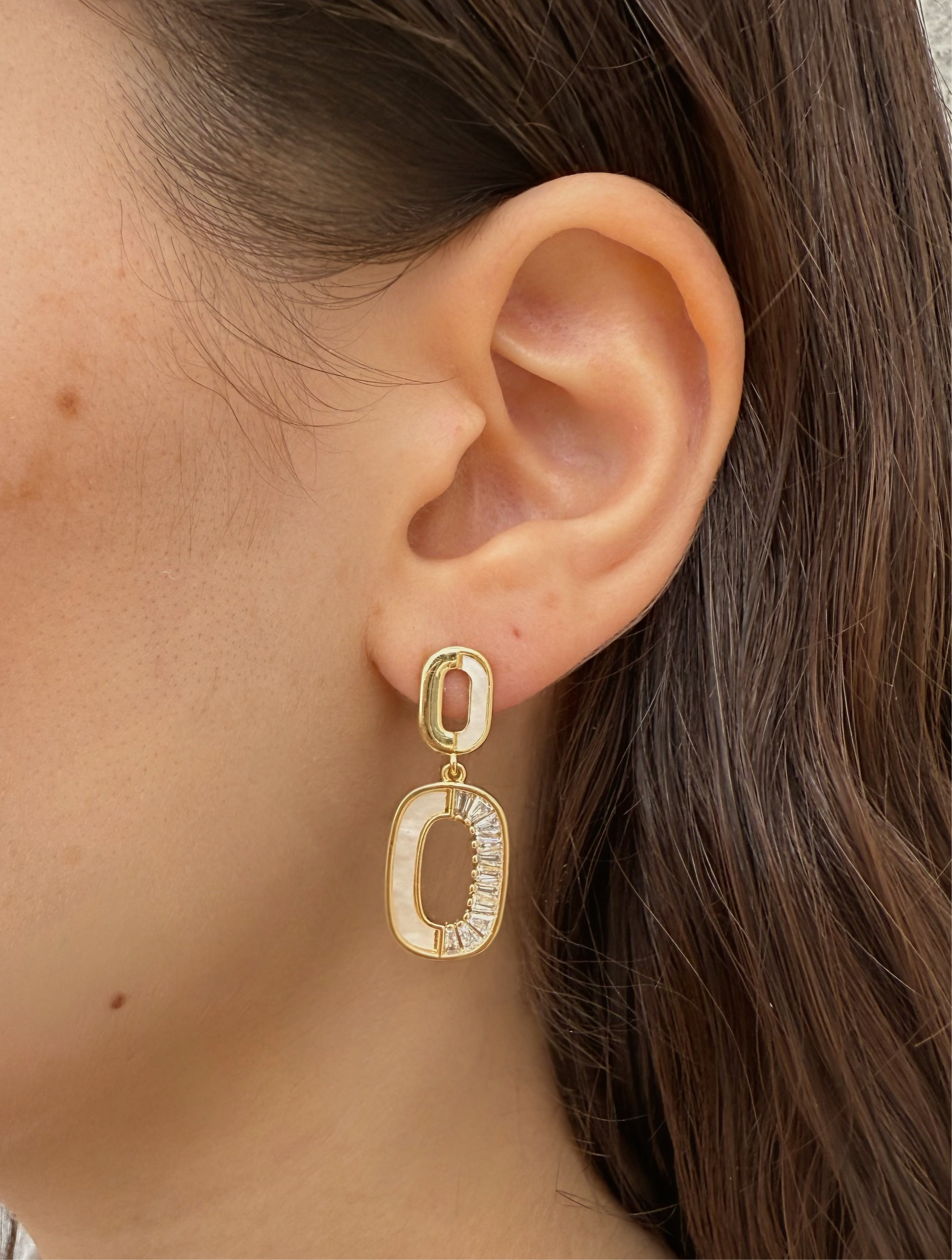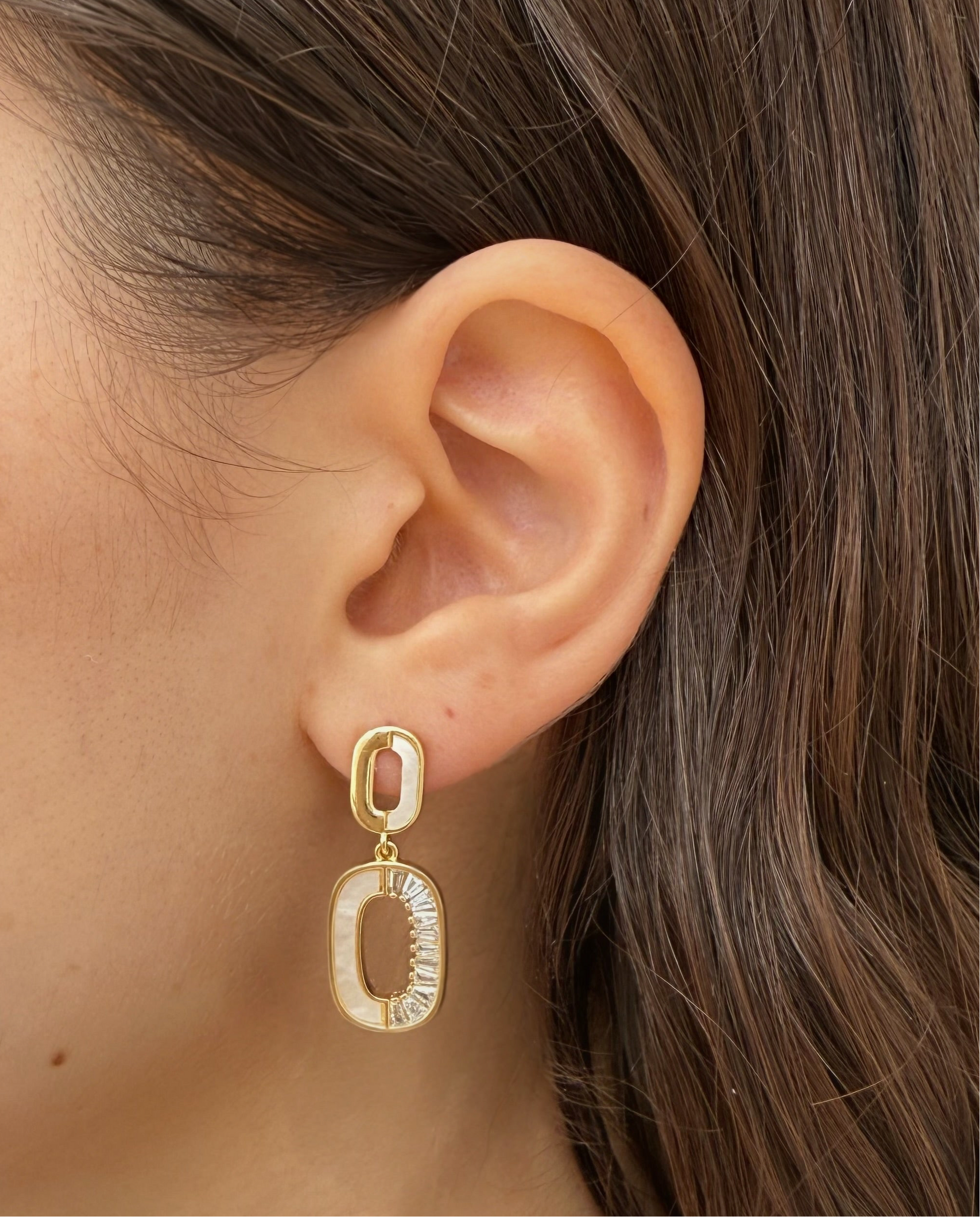 מקולקציית ברזיל שלנו, בציפוי זהב 18K. עיצוב אובלי ייחודי בשילוב פנינת צדף ואבני זירקון נוצצות, המעניק מראה אלגנטי ומלא סטייל, מושלם ליום ולערב.