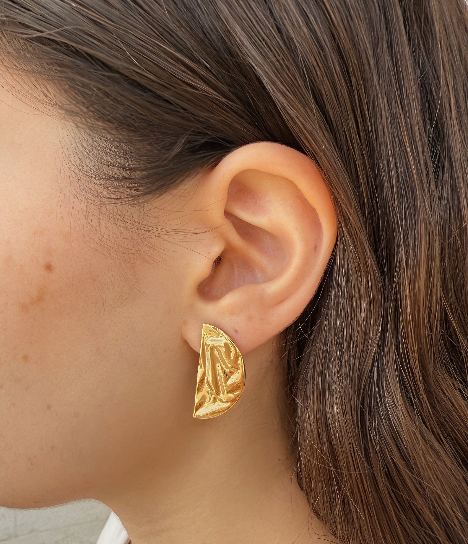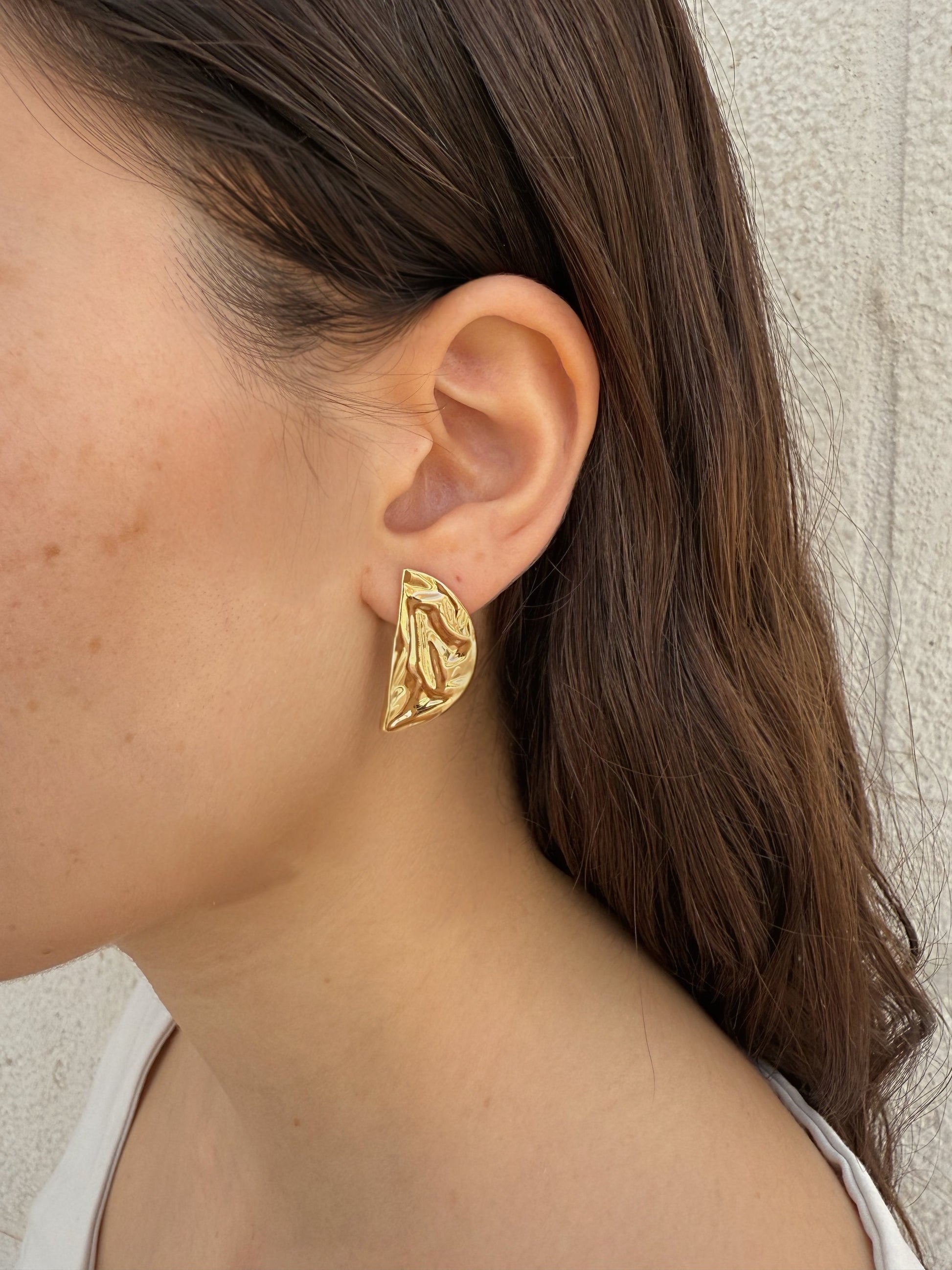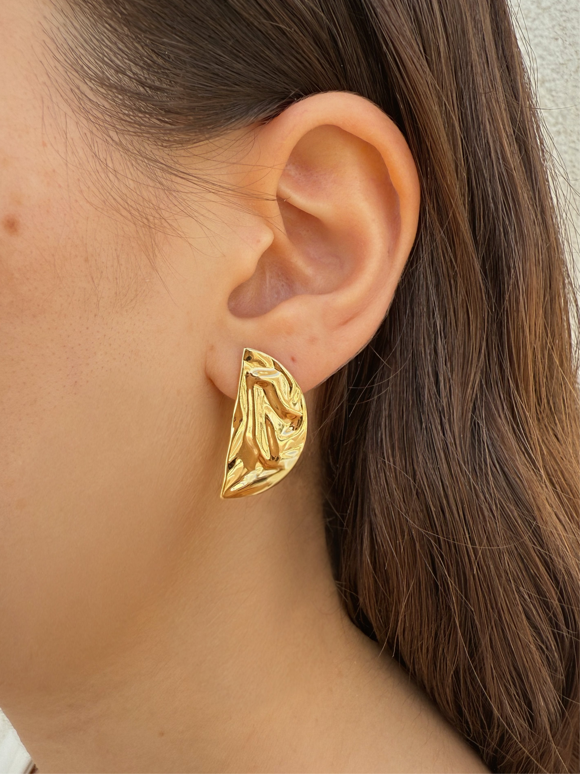 מקולקציית ברזיל שלנו, בציפוי זהב 18 קראט. עיצוב ייחודי בהשראת תנועת הגלים, עם טקסטורה אומנותית וגימור מבריק.