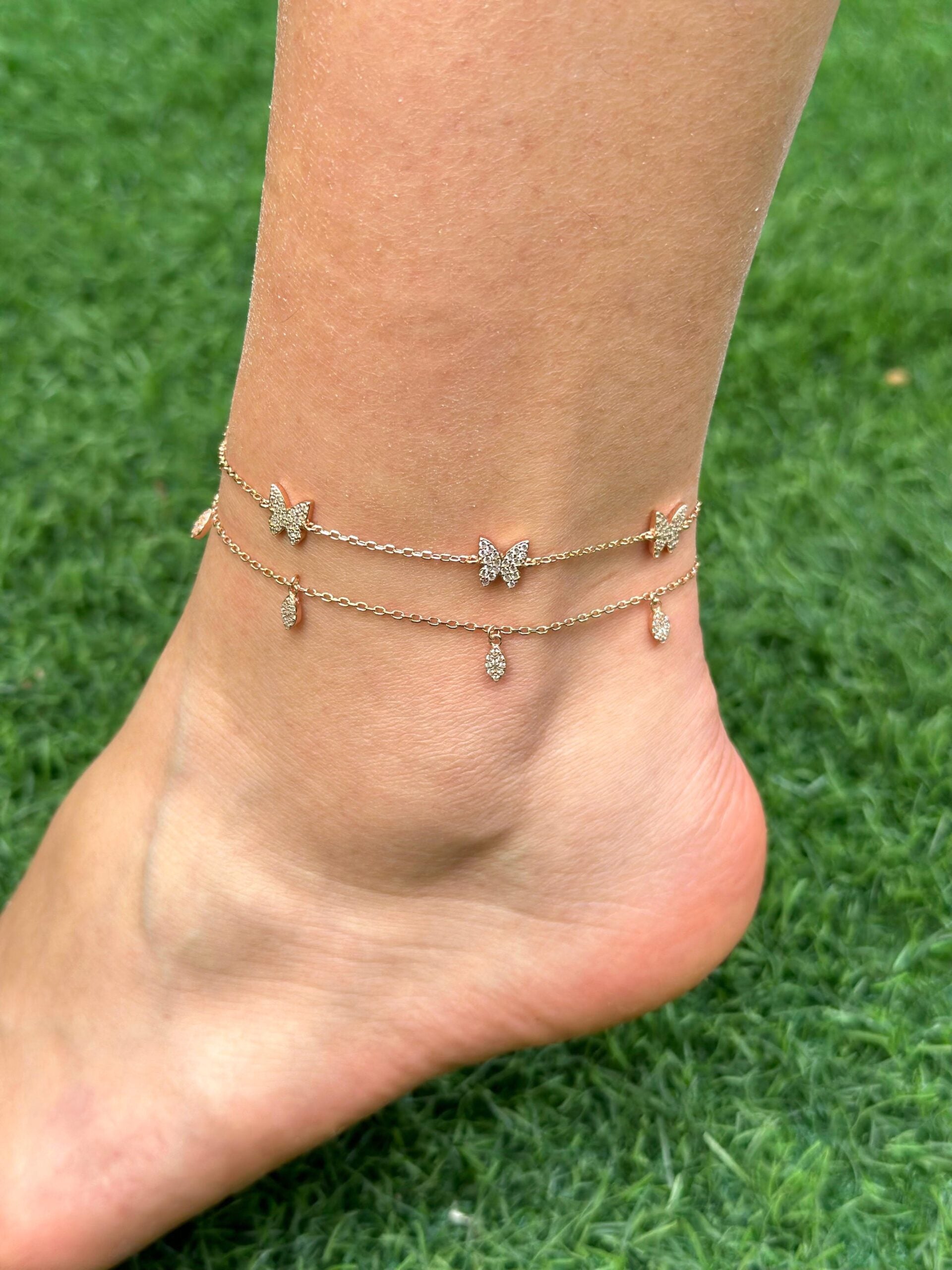 משובץ אבני זרקון נוצצות בשתי שורות עדינות עם תליוני פרפרים מרהיבים.